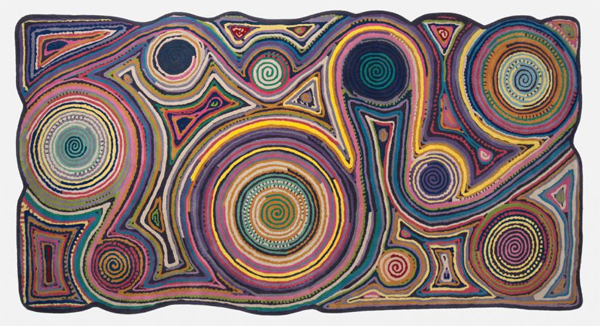 Χειροποίητο χαλί σχεδιασμένο από τον Estudio Campana. Το μοτίβο, αποτελείται από σπείρες, ομόκεντρους κύκλους και σχήματα, που τυλίγονται το ένα δίπλα στο άλλο και μοιάζει να αντλεί την έμπνευσή του από την τέχνη πρωτόγονων φυλών.