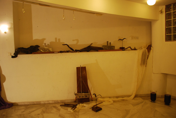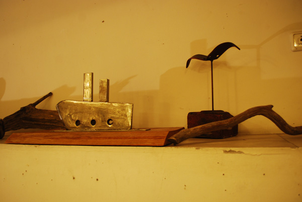 Αντικείμενα από μέταλλο, ξύλα, υφάσματα ξεχασμένα, παρατημένα σε χώρους αναζητήθηκαν και βρέθηκαν χάρις στο μεράκι και την αγάπη της δημιουργού. Βαθειά συνειδητοποιημένη για το περιβάλλον, την οικολογία, την ανακύκλωση, όπως η ίδια μας εξομολογήθηκε, εμπνέεται από τις μορφές τους, τις μνήμες που κουβαλούν και διαμορφώνει συνθέσεις μοιράζοντας στο κάθε κομμάτι το ρόλο του.