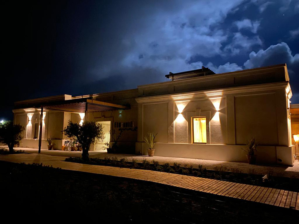 Το έργο του στούντιο more&co της Paula Rosales επικάλυψε τις προσόψεις και τα εσωτερικά χωρίσματα του κτιρίου με ανοιχτόχρωμο ασβεστοκονίαμα. Σε συνδυασμό με παραδοσιακές κατασκευές που βρέθηκαν στο Cádiz (Καντίθ), αυτό το υλικό είναι σαν ένα δέρμα που αναπνέει και προστατεύει το κτίριο, διασφαλίζοντας τη συναισθηματική και σωματική ευημερία στους κατοίκους. Η οροφή είναι μονωμένη και καλυμμένη με χαλίκι ή συνεχή τσιμεντένια πλακόστρωση, για άλλη μια φορά σε ανοιχτόχρωμες αποχρώσεις για αντηλιακή προστασία και για την ενσωμάτωση στο τοπίο από πανοραμική θέαση. Το δώμα και το αίθριο έχουν επίσης εμπλουτιστεί με βλάστηση χαμηλής συντήρησης για τον ίδιο λόγο, δημιουργώντας σύνδεση με το γύρω τοπίο. Ο χώρος στάθμευσης αυτοκινήτων διαθέτει χαλίκια με τα ίδια χρώματα, δημιουργώντας μια υφή στο οδόστρωμα που αναγκάζει τα οχήματα να επιβραδύνουν για την άνεση των πεζών.