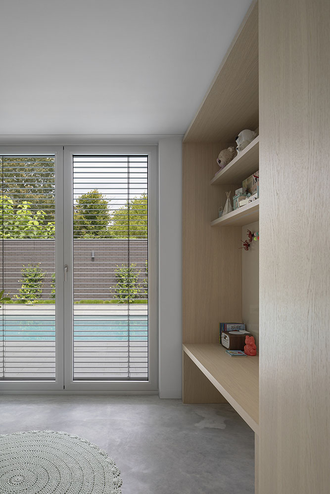 Με πουριστική σχεδιαστική προσέγγιση και λιτά υλικά, οι Bedaux de Brouwer και οι i29 σχεδίασαν μια βίλα που έχει πολυτελή ποιότητα, χωρίς να είναι επιβλητική. Η μεγαλύτερη ποιότητα αυτού του σπιτιού είναι η αρμονική ενσωμάτωση του μέσα και του έξω μέχρι την παραμικρή λεπτομέρεια. Μεγάλες ξύλινες επιφάνειες εφαρμόζονται σε όλο το σπίτι για τη σύνδεση των διαφόρων περιοχών. Ντουλάπια, ντουλάπες, τοίχοι, συρόμενες πόρτες, κρεβάτια είναι κατασκευασμένα από το ίδιο ξύλο και φινίρισμα για ενότητα και σύνδεση.