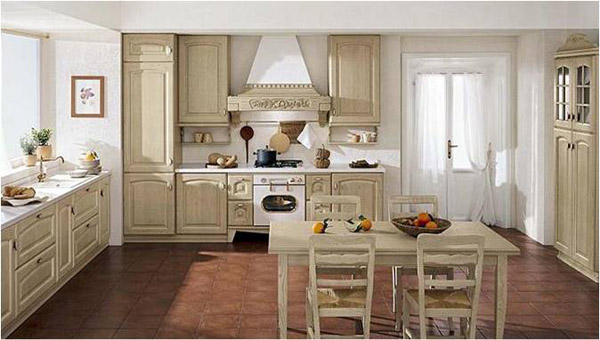 Το χρώμα της κουζίνας που θα σας πρότεινα να είναι στο χρώμα καρυδιάς, όπου θα ταιριάζει με τα κουφώματα και θα δώσει ζεστασιά στο σπίτι. Αυτή η κουζίνα θα ταίριαζε με όλα τα πλακάκια που σας έδειξα παραπάνω, αλλά θα ήταν καλύτερο να προτιμήσετε ή ένα πλακάκι σε μπεζ απόχρωση (για να υπάρχει αντίθεση και να μην σας δεσμεύσει στο χρώμα των επίπλων που θα επιλέξετε) ή με το πλακάκι στους τόνους του πράσινο.