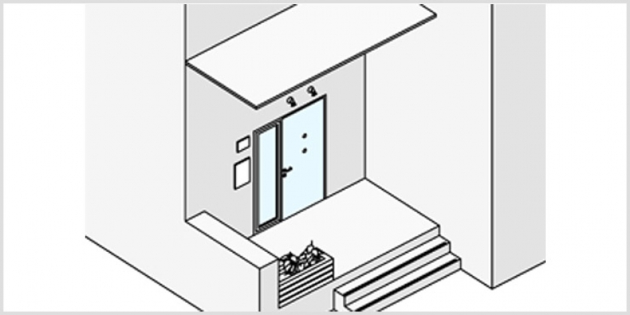 - Εγκατάσταση φωτισμού. Η είσοδος πρέπει να είναι πολύ καλά φωτισμένη. Σημαντικότερη είναι η τοποθέτηση φωτισμού ακριβώς πάνω από την πόρτα. Τα κουδούνια επίσης πρέπει να είναι καλά φωτισμένα.